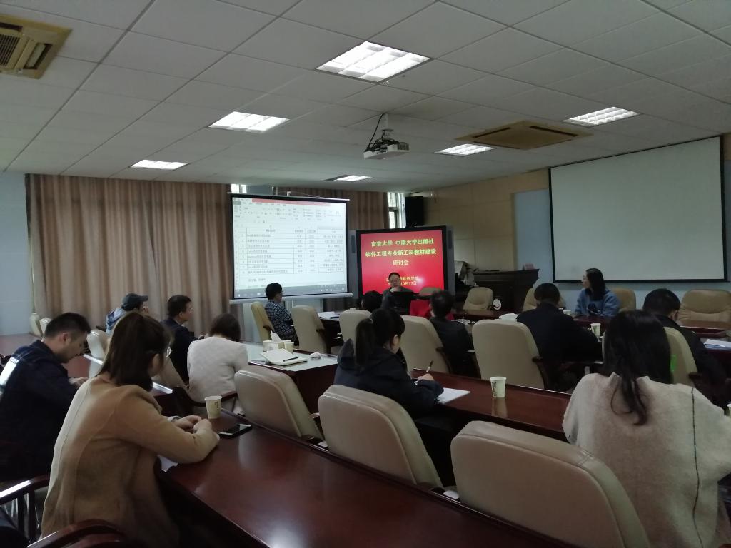 10月17 日上午,学院在3418 会议室召开软件工程专业新工科教材建设研讨会,学院经理周清平、党委书记李爱华等学院领导、教研室主任,骨干教师与中南大学出版社编辑韩雪座谈研讨,就融合创新背景下新工科教材建设的思路展开探讨。