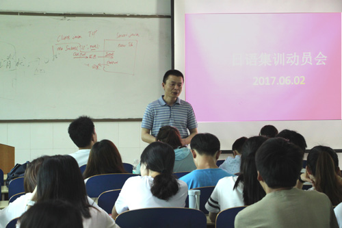本网讯 (通讯员 李宝平)为迎接即将到来的日语等级考试,提高员工日语过级率,学院特组织2015级日语班开展为期一个月的日语集训。6月2日,学院在3223教室召开日语集训动员大会,副经理徐洪智、经理助理蔡国民、教务办主任陈生萍及部分专业教师出席。