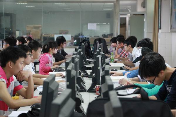 本次比赛按照国际ACM比赛的规则进行,共有来自软件服务外包学院、张家界学院、信息科学与工程学院的113名同学参加。试卷题目共有十道,两道以英文形式给出。选手在看到题目后,编程进行解答,解答完每道题目,即可将程序通过网络提交。为了保证比赛的公平性和公开性,每一位选手所提交的程序,系统将当场进行评判,并对提交的时间进行记录,这也给参赛选手们带来了无形的压力。随着比赛时间的推移,现场的气氛也越来越紧张,每一位参赛选手都在争分夺秒,力求攻克这十道难题。