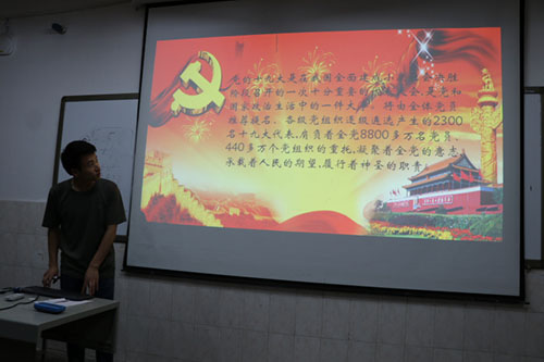 各班团支书精心准备了关于中共十九大的PPT,向同学们介绍了大会的背景、基本原则、重要意义以及简要内容。为了增进同学们对十九大的理解,班委还就主题内容进行随机提问,同学们也积极进回答,畅谈了自己对十九大的认识,表示将继续关注党政时事,加强理论知识的学习,以党员的标准提升自己。