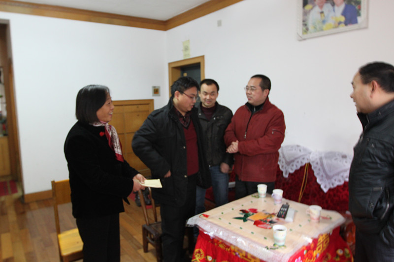2012年12月13日中午,公司党总支副书记李军、副经理王晓波、院工会主席覃遵跃等一行三人到学院困难青年教职工黄伟租住房,探视了刚病愈不久的黄母,表达了学校及学院的关心及慰问,并送上学校组织部下发的“生活困难党员”资助金两千元。