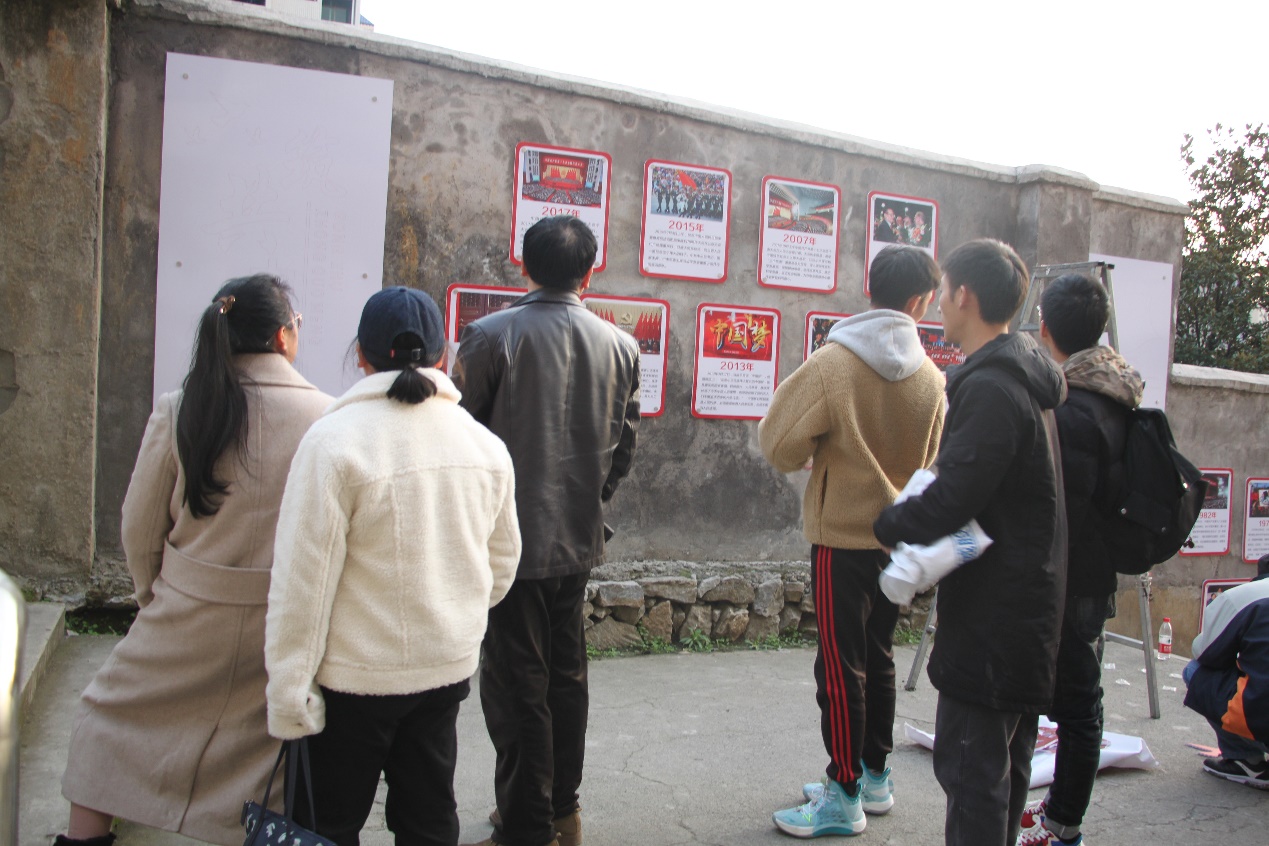 踏入大门,映入眼帘的便是宿舍文化长廊,领导和老师们放慢了脚步,观看了党的历史征程。