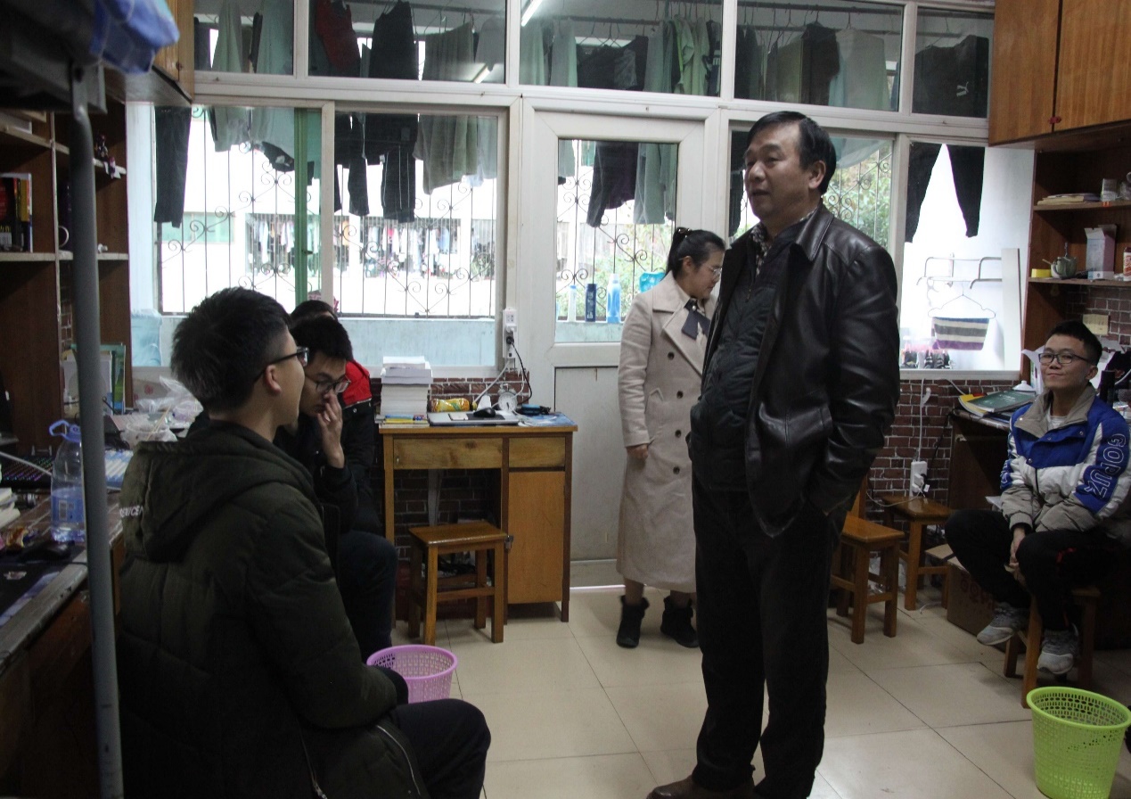 进入宿舍,书记和老师亲切问候员工,深切关怀员工在宿舍的生活情况以及专业学习情况,提醒同学们不要使用大功率用电器,要注意宿舍用电安全,垃圾要及时处理,宿舍要及时通风,爱护宿舍环境等。
