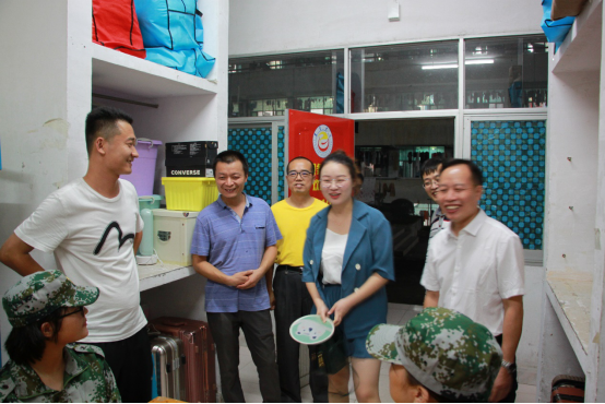 本网讯(邓腾)为了解新生面貌,帮助新生更快地融入老员工活,9月8日晚1930分,软件公司党委书记李爱华、副书记李军、副经理徐洪智、学工办主任宁小浩、新生军训指导员王喜元及2019级新生班主任老师在学院员工会的陪同下一起走进员工宿舍看望2019级新生。