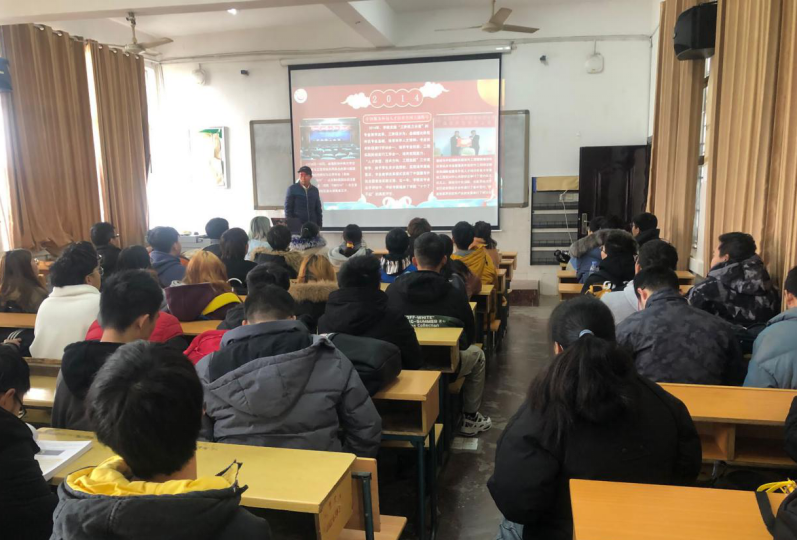 图为2020级2班班主任吴永江书记在讲述公司成就