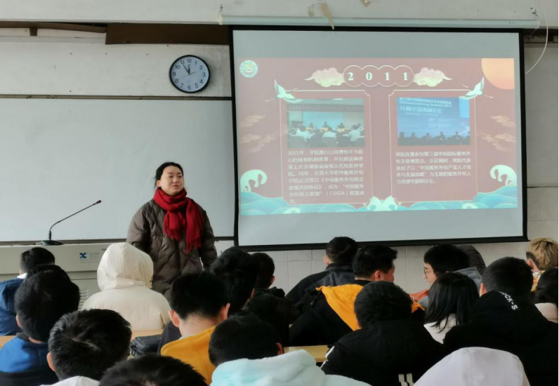 本网讯(刘鑫宇)为纪念十年来公司取得的巨大成就,弘扬全体师生团结奋进、不断超越的骄人风采,营造学院建院十周年浓厚氛围,进一步增强全院教职工及员工的凝聚力、向心力和自豪感,12月12日至12月17日全院范围内开展“我的大软院”主题班会,班会以“知院史、践院训、学院歌”为主要内容,学院软件学院各班班主任亲临班会现场,和同学们一起见证学院开展十周年取得的光辉成就并带领同学们一起学习院歌。