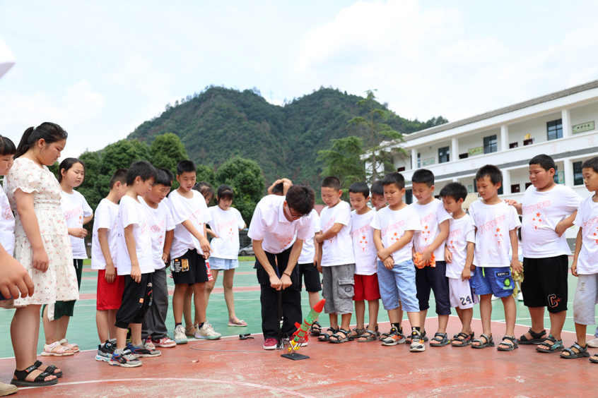 在走进科学课上,志愿者老师带领同学们一起制作充气飞机。小朋友们在了解了充气飞机的制作原理后,纷纷上前要自己动手体验。“哇,它一定可以飞到太空去”“我以后要自己动手制作真正的飞机飞上天空!”孩子们的思考方向在一次实验过后被充分的打开了。科学夏令营是第二次走进茅岩河镇中心学校,极大激发了员工们对于科学相关知识的渴望以及对于未来梦想的追求。“我就是希望,可以让同学们真正参与到实验当中来,帮助他们清晰未来的发展道路”志愿老师开心地说到。