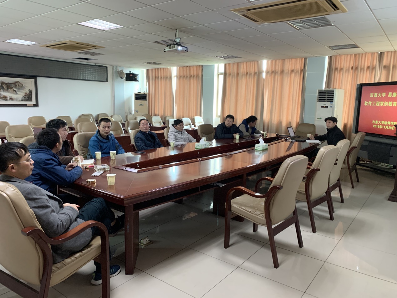 本网讯(邓腾)11月28日上午10时,千亿球友会软件学院—易康萌思软件工程双创教育研讨会在学院3418会议室召开,易康萌思电子商务有限公司董事长王建峰,软件经理周清平,书记李爱华,副书记吴永江,副经理徐洪智,胡斌,办公室主任曾明星,经理助理蔡国民参加交流会参加了研讨会。校企双方在前期的合作基础上,获得湖南省双创示范基地并且通过了合格评估,对员工创业意识,创业能力的培养起到良好的作用,并且积极引导高质量就业。本次研讨会围绕如何继续深化校企双创教育开展,在创业大讲堂,创业微课堂,团队实践训练及双创服务平台的建设等方面进行了细致的探讨,力争将双创教育实践走得更深入,产教融合形成一个完整的系统。