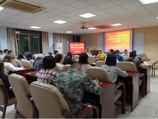 本网讯(邓腾)为深入学习贯彻公司党委“不忘初心、牢记使命”主题教育会议精神,9月18日晚19时30分,软件学院在3418会议室召开“不忘初心、牢记使命”主题教育动员大会。并邀请马克思主义学院副经理彭兴富做辅导学习报告。软件学院书记李爱华、经理周清平、副书记李军、副经理徐洪智、学院各支部书记及软件学院全体师生党员参会,会议由软件学院书记李爱华主持,其中员工第一党支部在中山实训基地创智谷的二楼会议室通过视频会议的方式对此次“不忘初心,牢记使命”主题教育活动进行了学习。