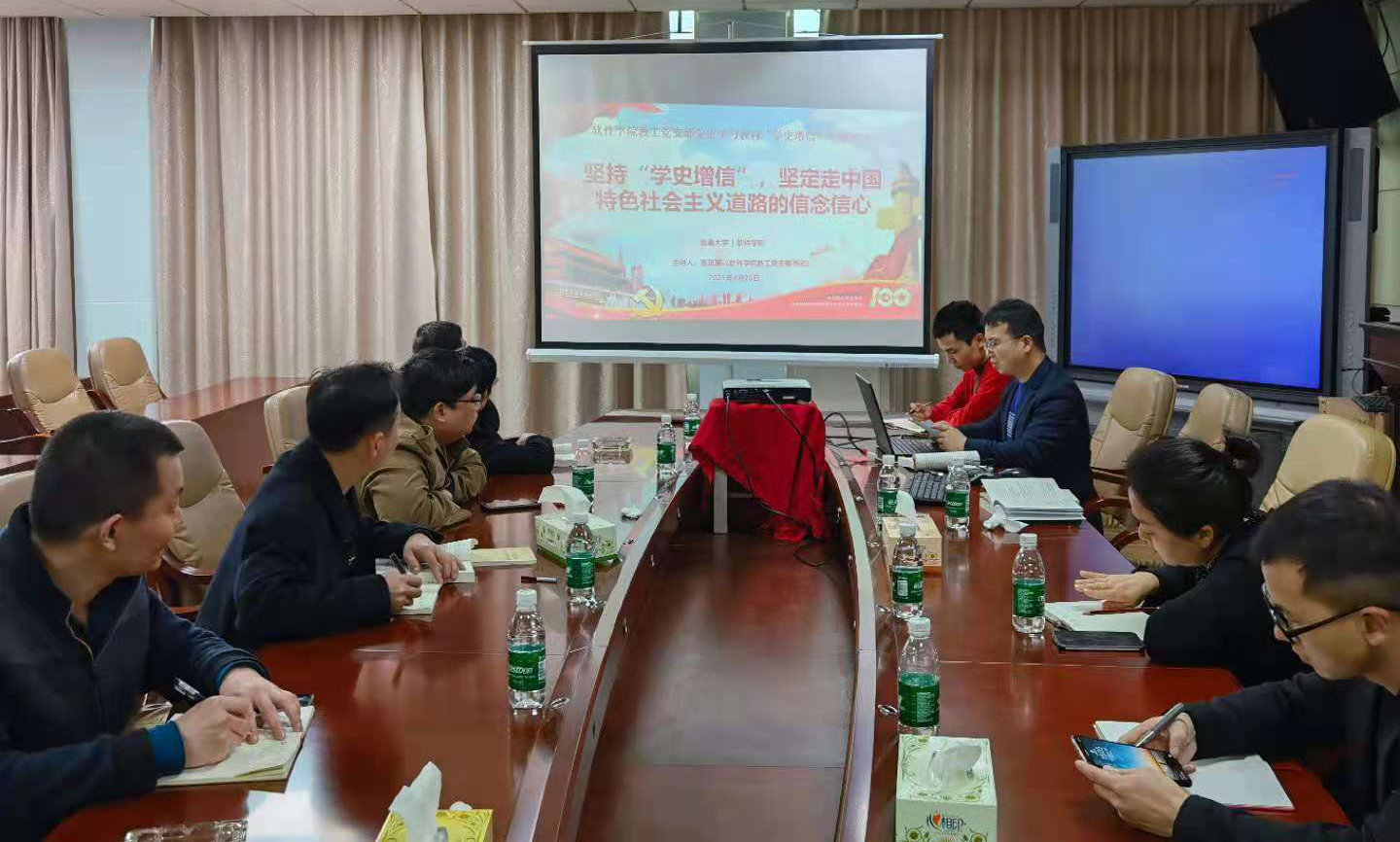 2021年4月20日下午,软件学院教工党支部全体党员在学院3418会议室开展“明理、增信、崇德、力行”专题学习第二期读书会,读书会采取党员同志领学、全员集中学习的方式,本期读书会重点学习探讨中国共产党在新民主主义革命时期、社会主义革命和建设时期、 改革开放新时期、党的十八大以来的历史等学习材料。
