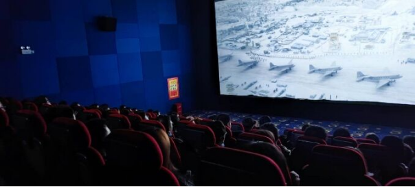 同志们认真观看电影