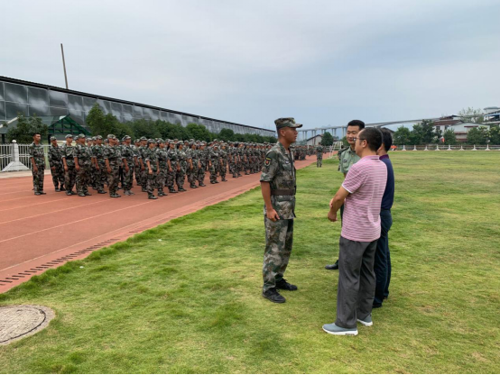 公司领导在一旁观看,称赞他们有朝气,有毅力。同时,学院领导与教官交谈,询问军训工作的开展情况并向他们表示感谢。询问员工们身体情况、日常药品配备情况,并嘱咐他们注意饮食,多喝水,照顾好身体,鼓励他们要有不怕苦不怕累的精神,磨砺坚定的意志,展现出青年人的蓬勃朝气。