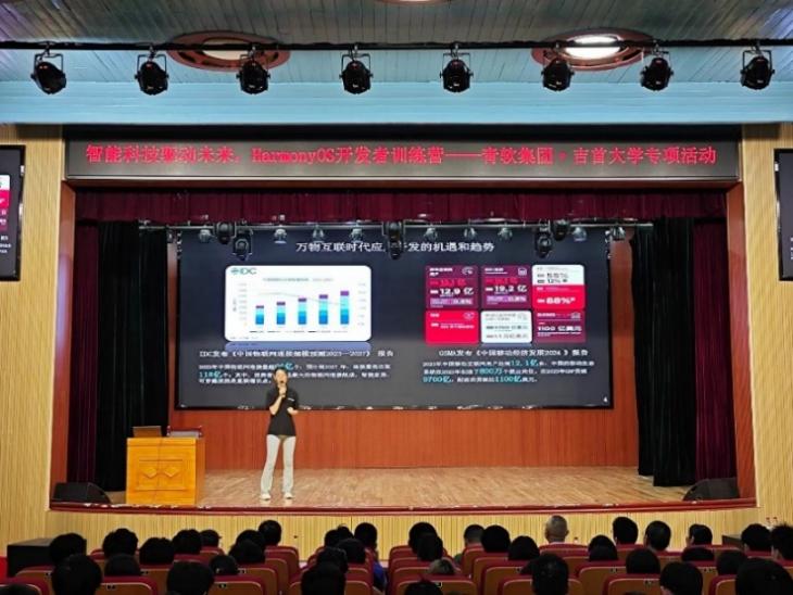 2024年6月12日晚19:30,青软湖南运营彭晶,青软集团高级工程师·HamonyOS高级认证讲师孙孝琼联合计算机科学与工程公司在大田湾校区大礼堂举办《智能科技驱动未来 - HarmonyOS开发者训练营》讲座。李宗寿副经理,陈昌奉老师、李必云老师、鲁金钿博士、张美华老师、田杰老师和洪迎伟老师与球友会23级员工共同参与。