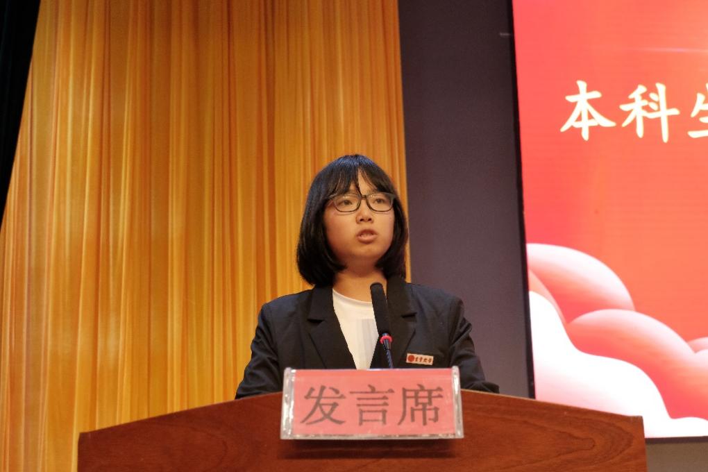 图为本科老生代表李新然同学发言
