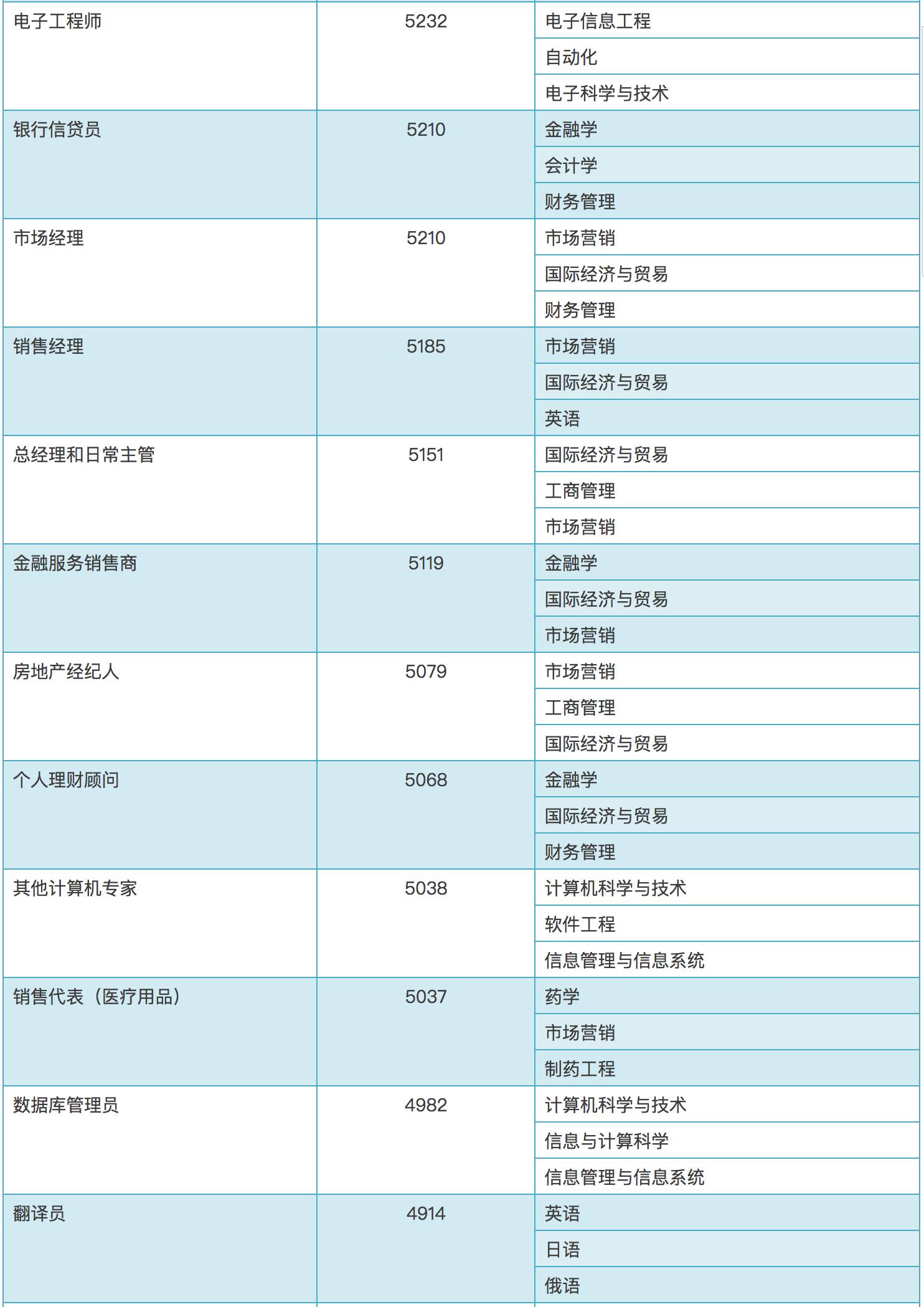本科毕业生从事的前30位高薪职业及其对应专业(前3位)⤵️